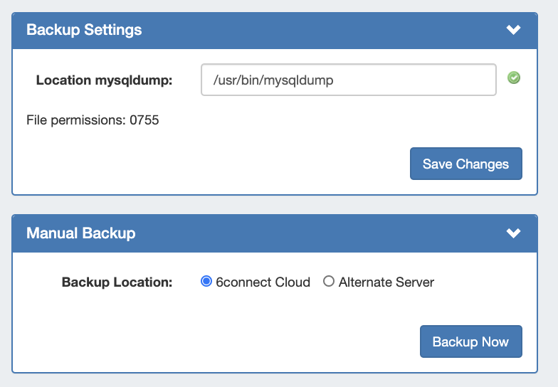 Once complete, click "Backup Now" to connect to the server and send the backup file.