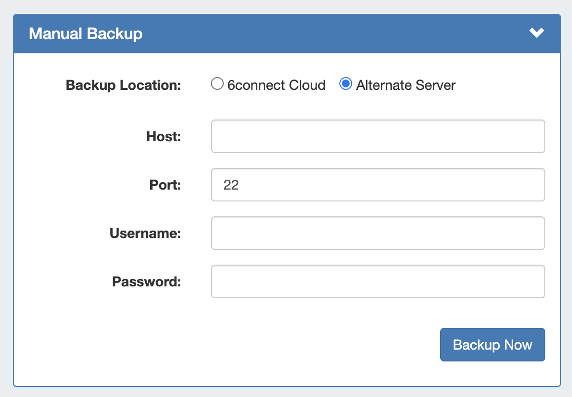 Manual Backup - Alternate Server: