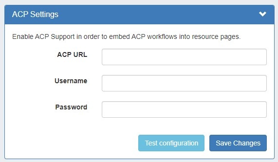 - ACP URL: The url for a licensed ACP instance then provide the