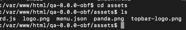 Using the Command Line Interface (CLI), save the desired logo image file (here, "panda.png") to your instance's "assets" directory, located at: "/var/www/html/[instance name]/assets"