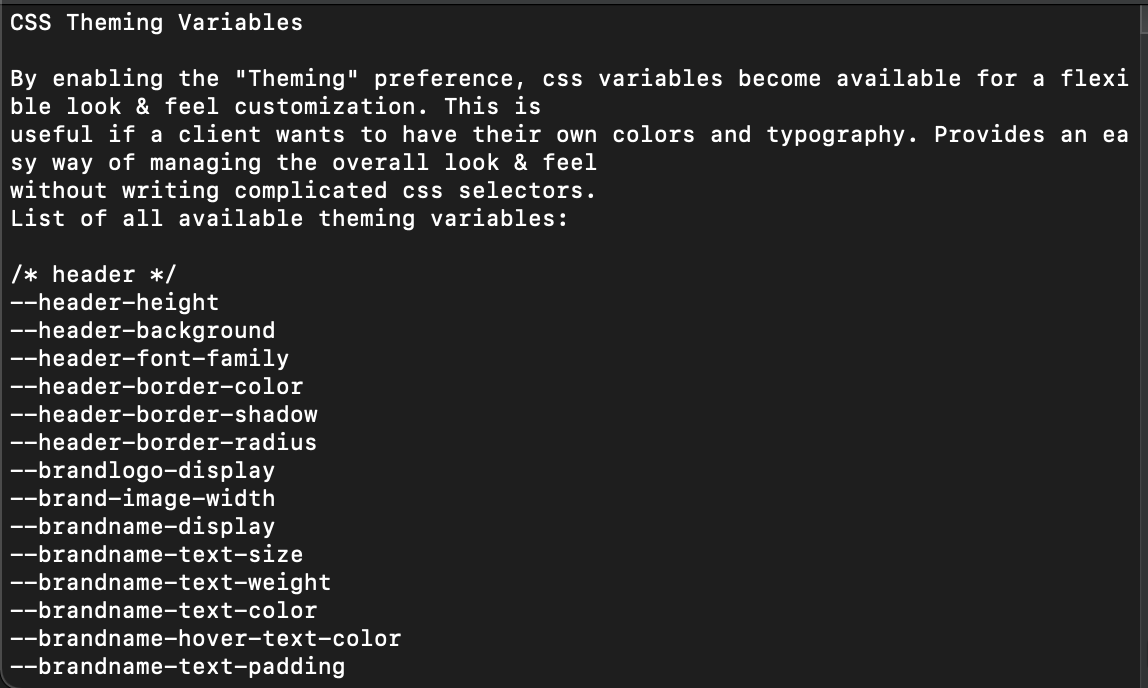 The README.txt file provides basic instructions as well as list of all available theming variables that may be used for a custom theme.