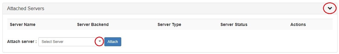 To attach a server, expand the "Attached Server" module, and click on the Attach Server list.