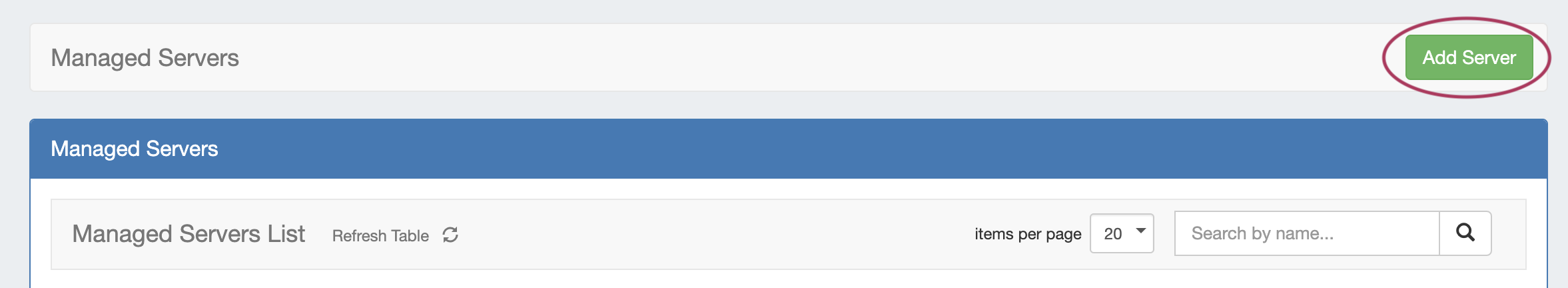 To set up a new managed server, click "Add Server" at the top right of the Managed Server Tab.