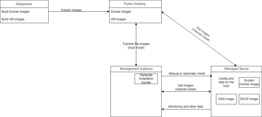 The overall process is always the same - ProVision generates an install bundle, it is transferred to the server, extracted there and run some scripts from it. This can be done by ProVision (automatic install) or by the user (manual). In case of automatic install ProVision will automate the steps, which the user would do manually. All the components can run without root access, but we need it for user creation, folders creation, network and heartbeat service setup.