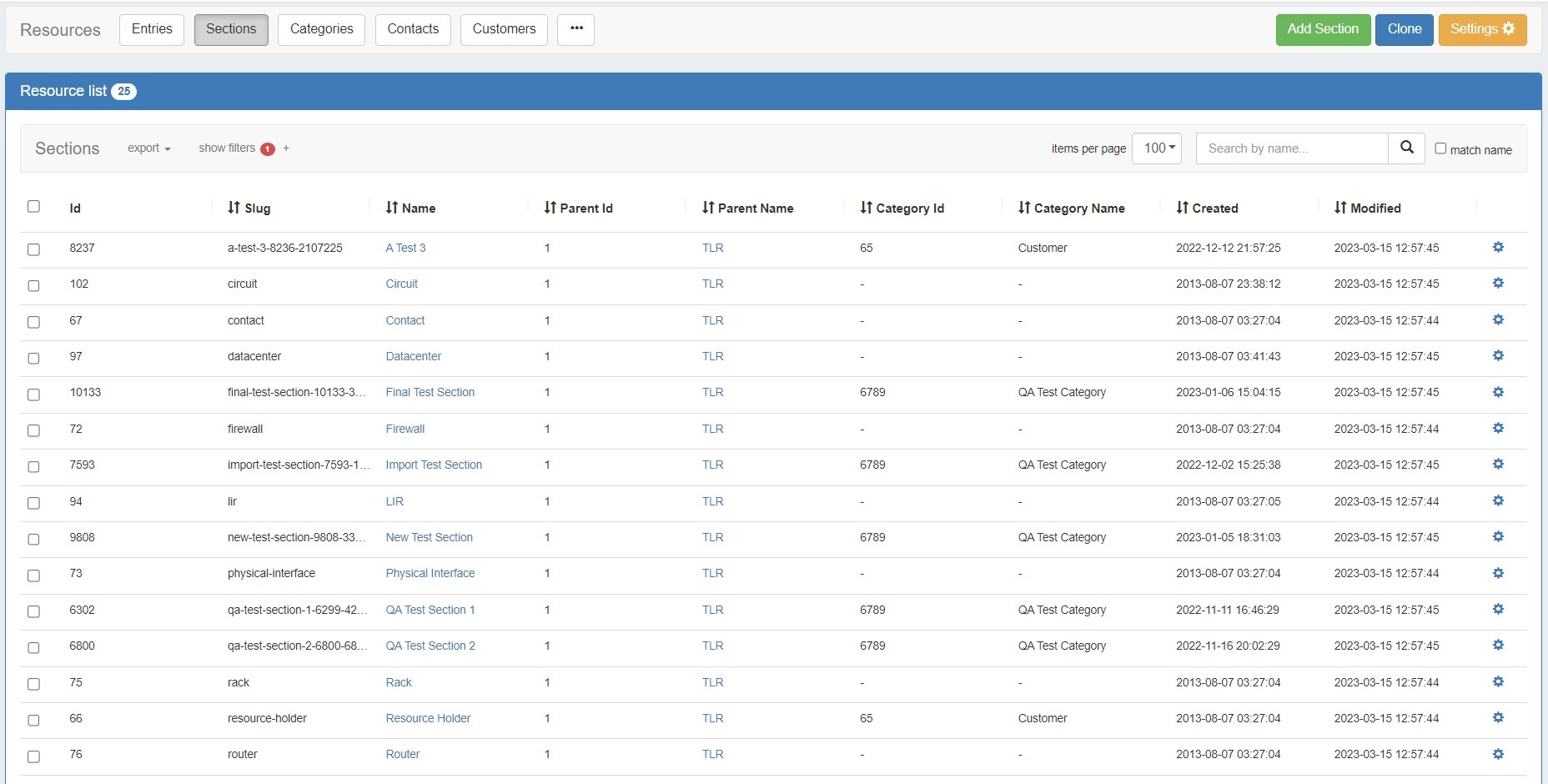 For example, you can create a section called "Resource Holder" and then assign a category "Customer". Then, you can view a list of resources that have been assigned to category "Customer".
