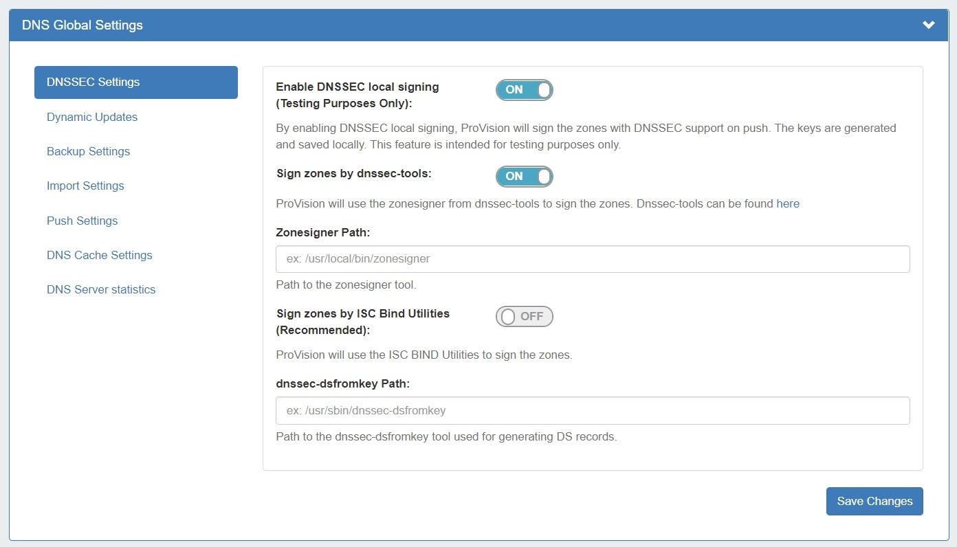 Dynamic Update via nsupdate: Toggle to "On" if you wish to use Dynamic Updates via nsupdate, instead of ProVision's internal implementation.
