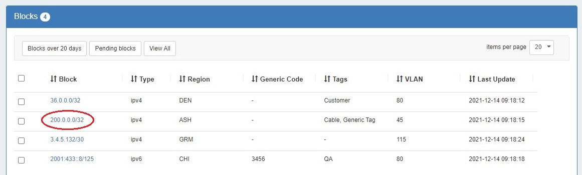 View Block in IPAM Manage