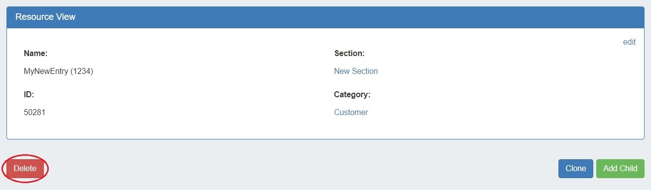 3) Clone Resource Button: Click to clone an existing resource