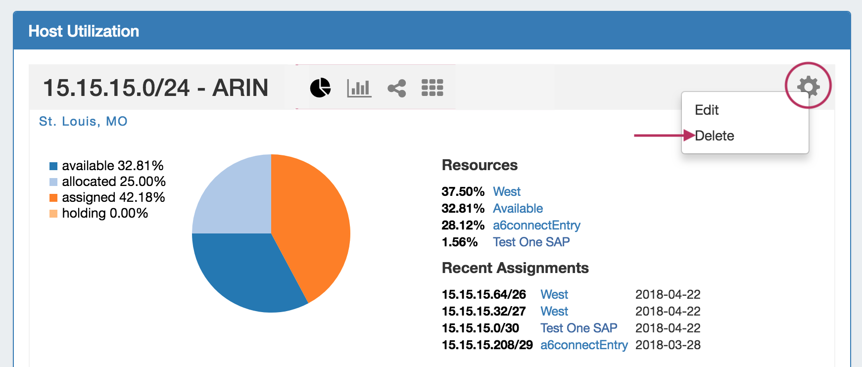 • Clicking on the CIDR header of the Aggregate Block Host Utilization module, or selecting "Edit" from the module's Gear Icon from the IPAM tab.