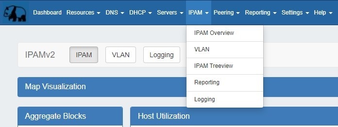 Two additional options are available in the IPAM Dropdown Menu: IPAM Treeview and Reporting: