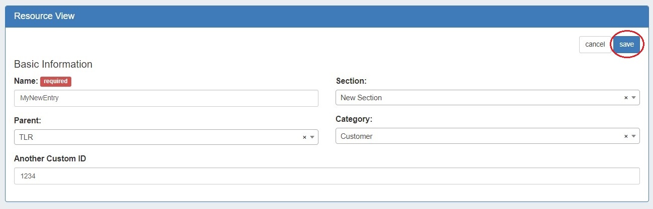 Once the Field Gadget has been added, and fields have been enabled for a section, the Field Gadget will display on the resource entry page for a resource of that section.
