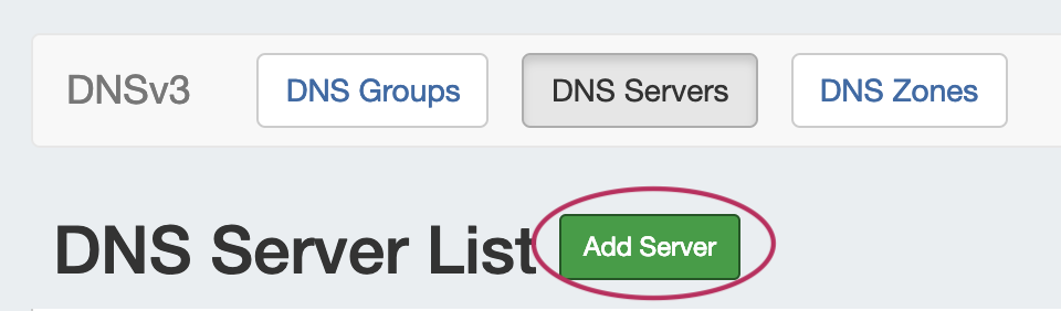 To create a new server, start from the DNS Tab, select the DNS Servers sub menu. Then, click the "Add Server" button next to "DNS Server List".