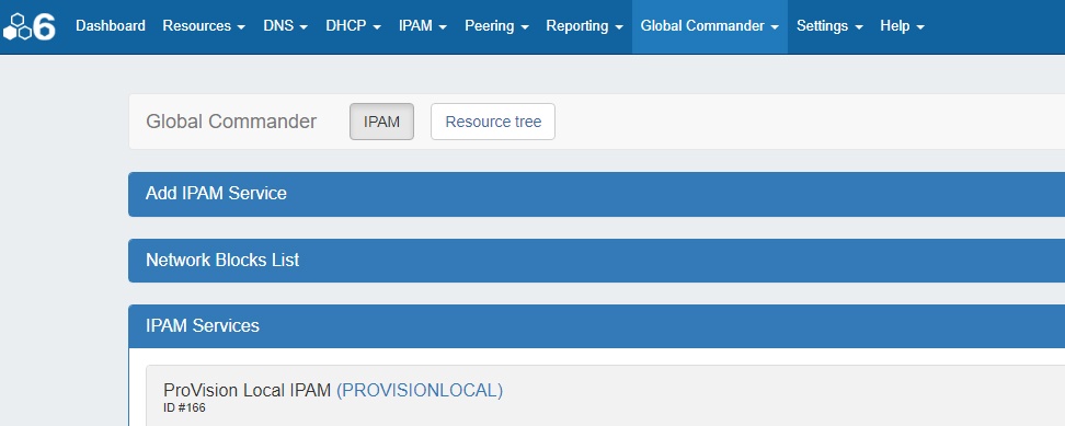Global Commander comes pre-loaded with a "ProVision Local" IPAM Service which represents the IPAM Module of the local ProVision instance.