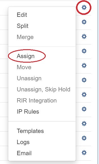 Select "RIR Integration" from the Action Menu in IPAM Manage.