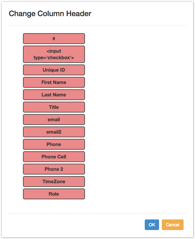2) In the "Change Column Header" dialog box, drag and drop the column header(s) into the desired order. Remember, this only moves the headers, not the data below them! Then, hit "OK".