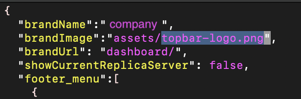 At the top of the file, look for the "brandImage" attribute. By default, it should read "assets/topbar-logo.png".