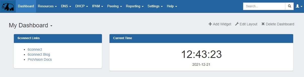 The Dashboard is your first stop when logging into Provision, giving you a quick graphical status overview as well as convenient links for reference and support. The Dashboard is comprised of modular "Widgets" that show different types of information. These widgets may be added, moved, edited, and customized to create personalized Dashboards.