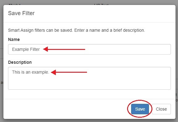 Enter a name and brief description for the filter and click "Save".