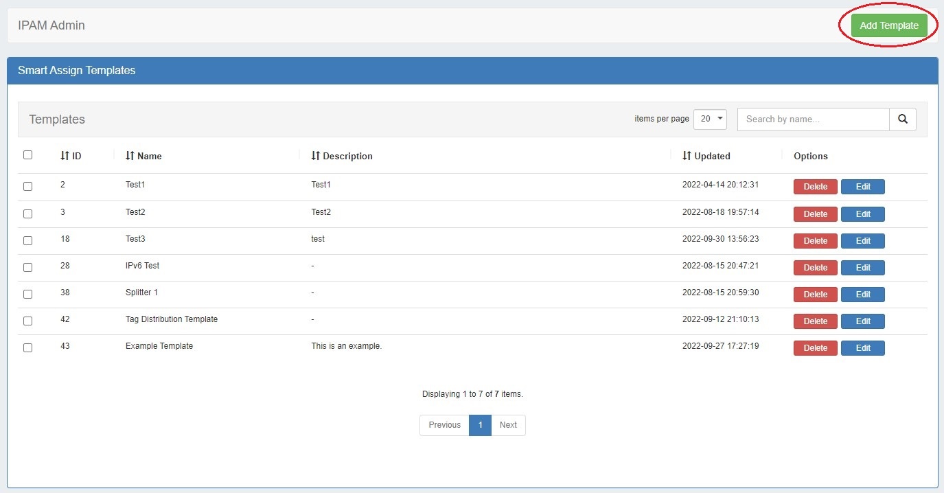 Once created, a Smart Assign Template is available to select and execute from either IPAM Admin → Smart Assign Templates or directly from the Smart Assign module in the IPAM Gadget.