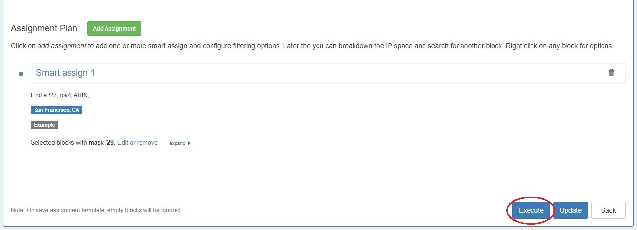 To execute the template assignment plan, click "Execute".