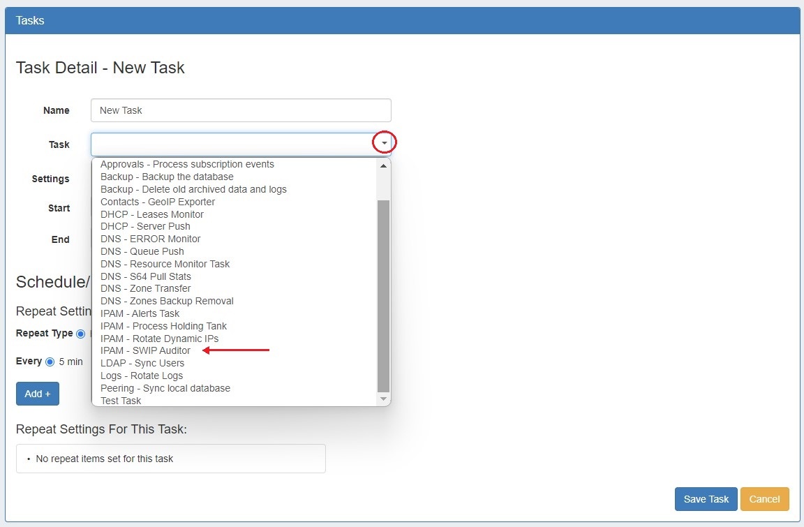 To run the RIR Audit on a schedule, use the (8.3.0) Scheduler Tab task in the New Task dropdown.