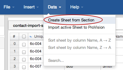 Under the "Data" menu, select "Create Sheet from Section".