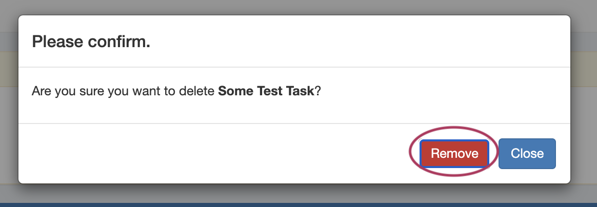 You will be presented with a confirmation message asking if you are sure you wish to delete the task.