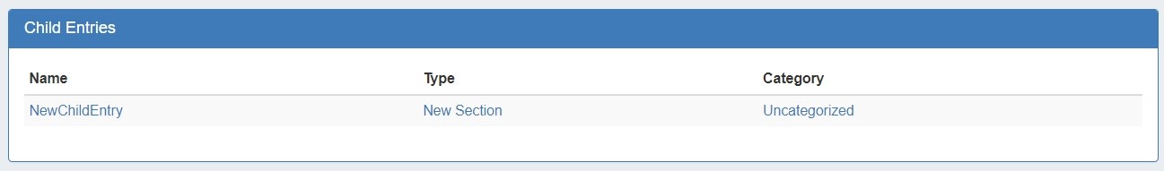 Once created, the child entry will show in a list at the bottom of the parent entry page.
