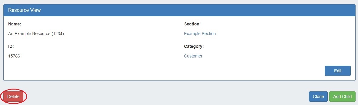 You may also select "Clone" from the bottom of a resource entry page, in which case the entry page you clicked "Clone" from will be automatically selected as the resource to clone.