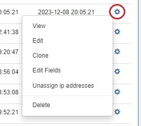 11) Action Menu: Right click anywhere on a resource's row to open the Action Menu. The Action Menu (gear icon) gives a list of actions to perform on the resource. If more than one resource is selected, bulk edit actions will display instead.