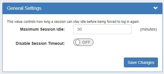 - Maximum Session Idle: This setting (minutes) controls how long a session can stay idle before being forced to log in again.