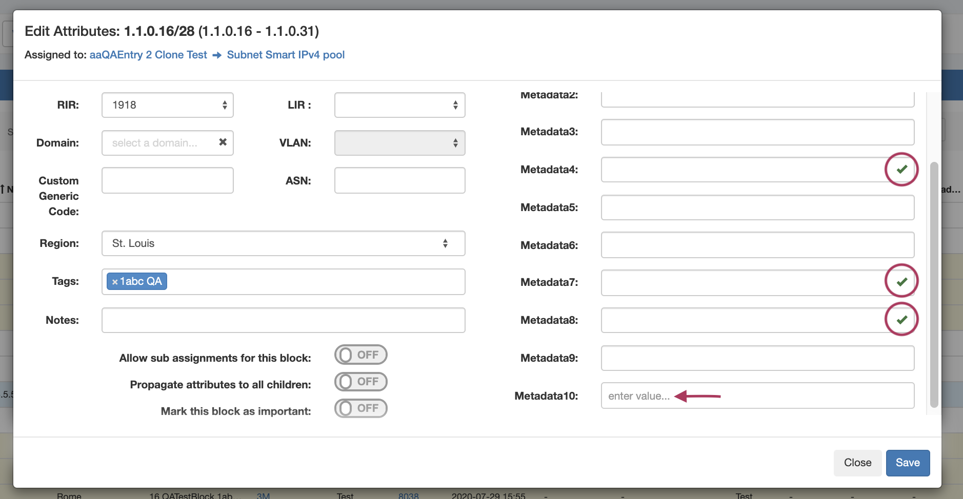 To see the constraint in action in IPAM or Resources, navigate to a block or field and open Edit. Select the field to which you applied the enumeration to view/select constraint items from the dropdown