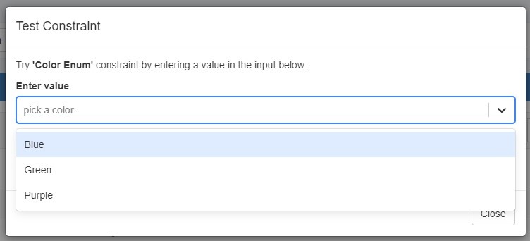 The test constraint form will appear - enter a test value, and you can check whether the constraint returns an appropriate invalid or valid response: