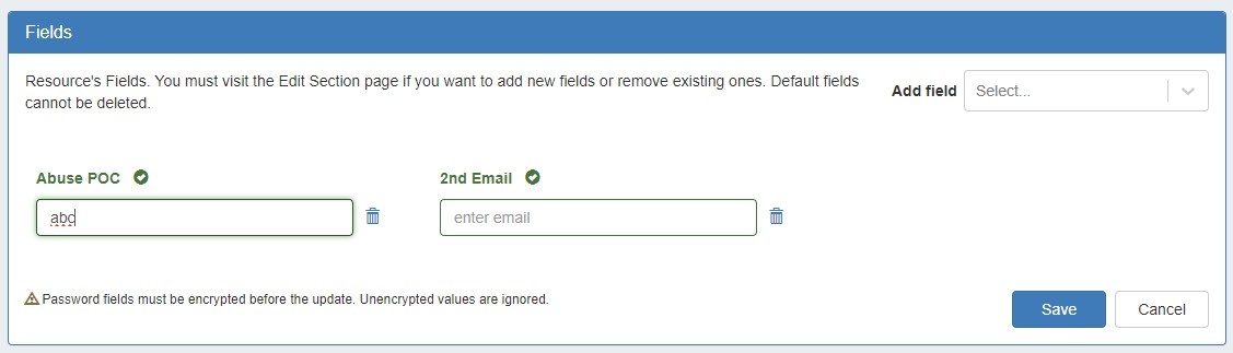 A constrained field is available to edit from the Resource List Edit Fields modal and the Resource's Fields Gadget.