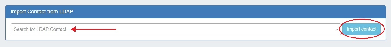 Use the search box to find an LDAP contact and click the "Import Contact" button.