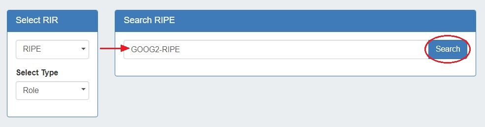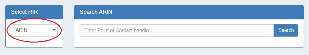 After selecting the RIR / Type (if applicable), enter the ARIN or RIPE Point of Contact Handle for the contact you are importing, then click "Search".