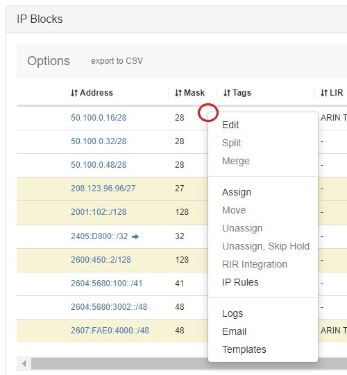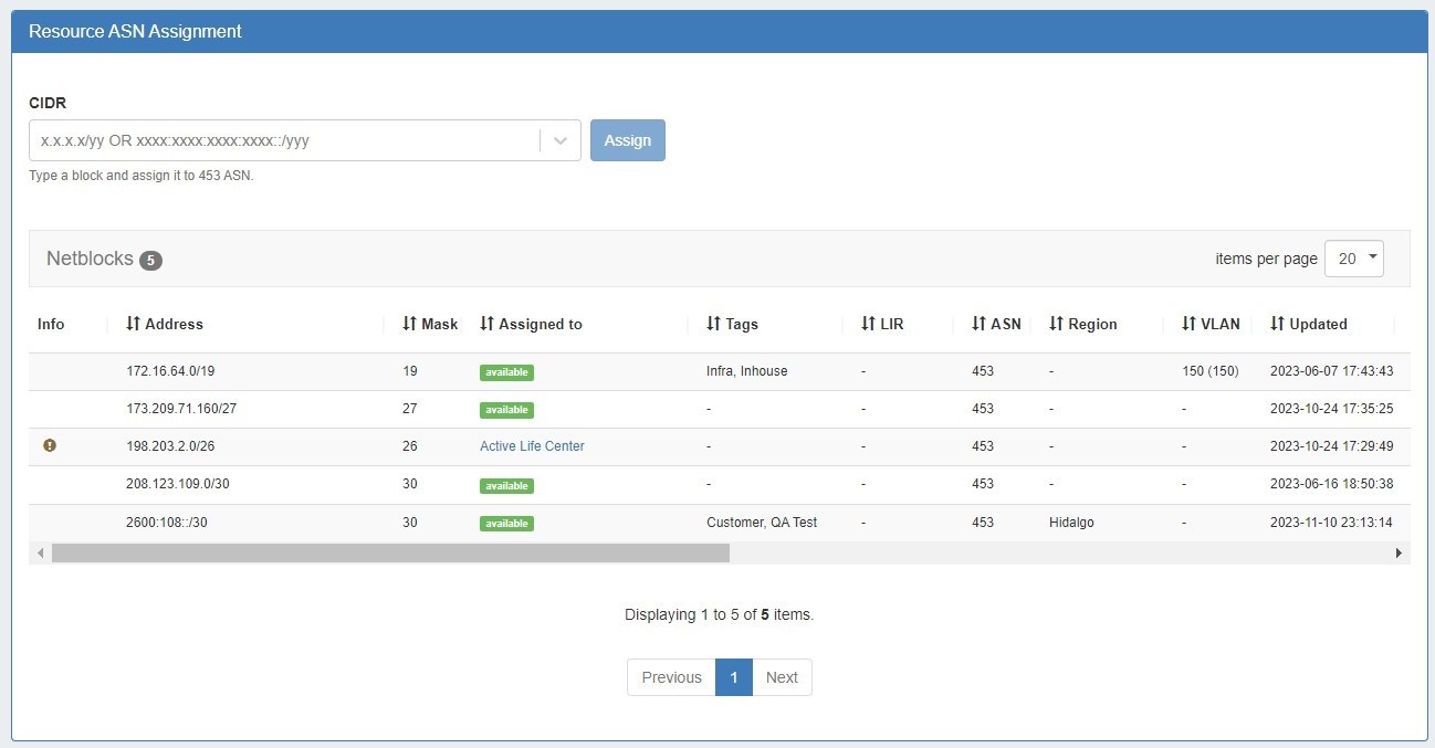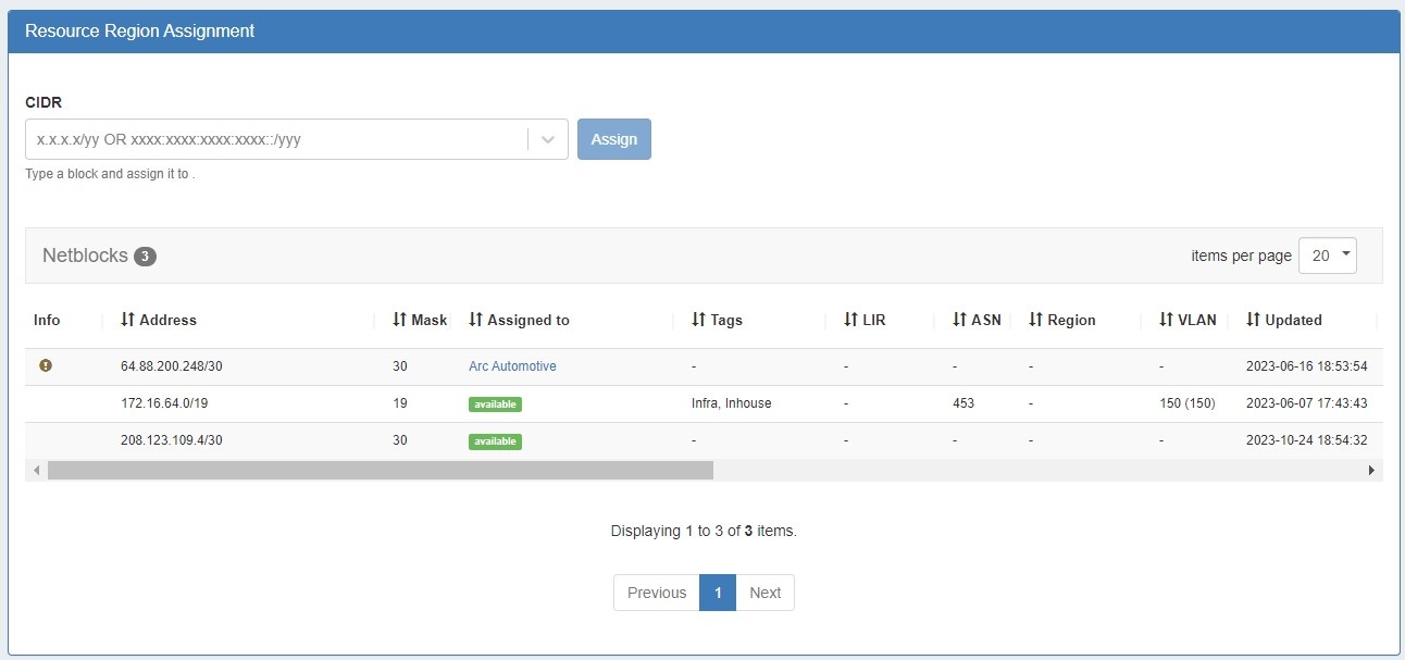 For more information on assigning and managing blocks, see Working with IP Blocks - Assigning IP Space.