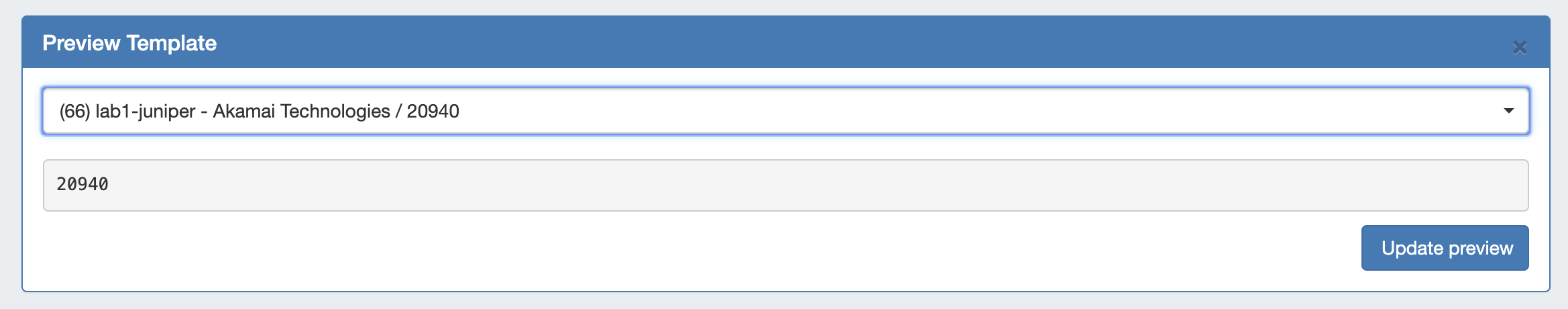 Select an existing Router/Session from the dropdown list to use to generate the preview. Once selected, the template output will display directly underneath the selected session.