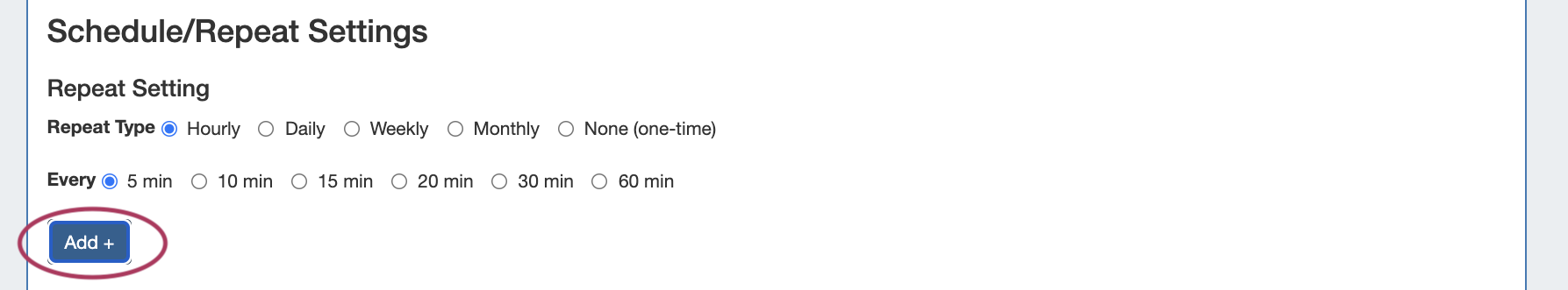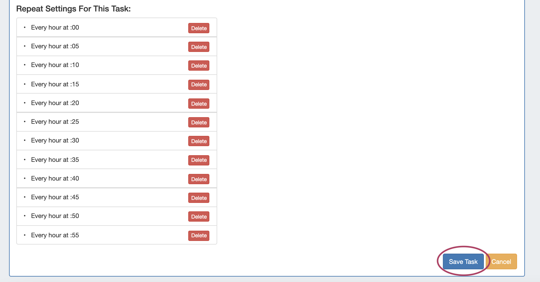 Select your time interval and click "Add". Each instance of the selected time increment will display under "Repeat Settings for this task.