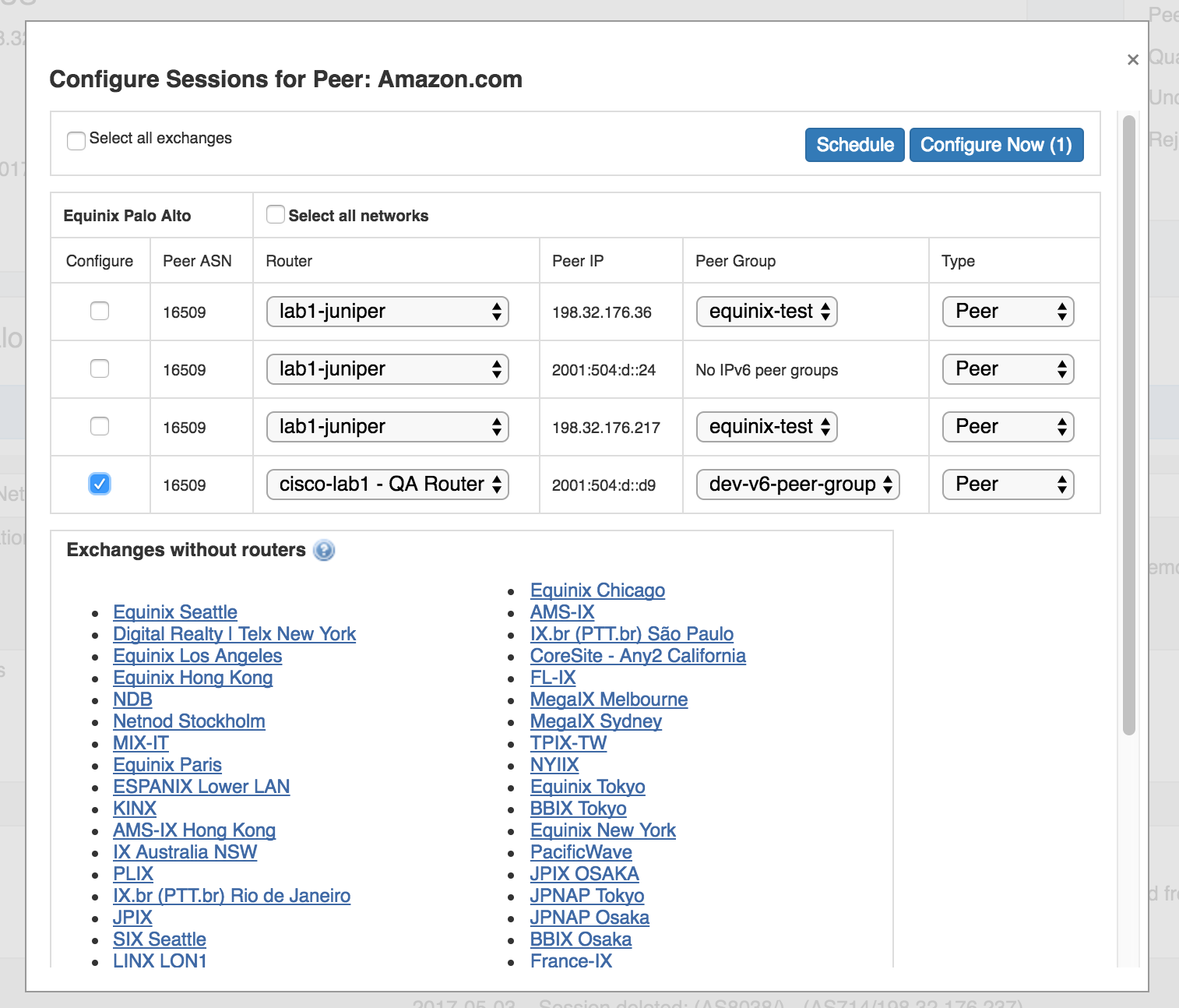 IM - 2380: When adding a Peering session, the Router selector will now correctly reset to the appropriate router list if the selected exchange is changed.