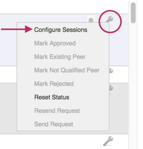 An option has been added to the Peering Communications action menu to "Configure Sessions" for that Peer. With this option, you can view and configure all sessions, from any or all exchanges, for that Peer from one menu. "Configure Sessions" becomes available once a peer has been marked "Existing" or "Approved" in the Communications Action Menu. For more information, see (HG-8.3.1) Peering Sessions.