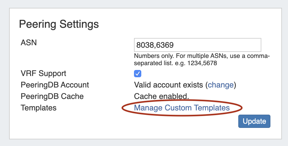 Peering Settings now displays a status notification to show whether Peering DB cache is enabled or disabled.