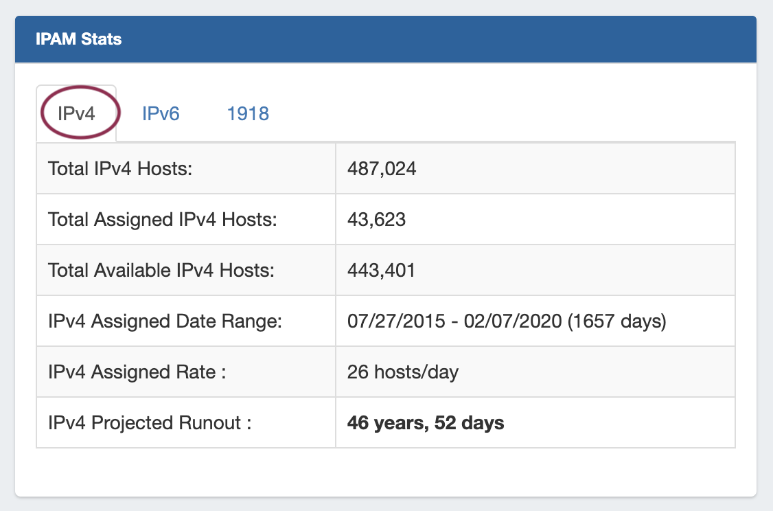 While in the Quickview panel, you may easily search for a block by typing the all or part of the CIDR into the IPv4 or IPv6 Filter boxes - useful for verifying an assignment or quickly scanning ranges.