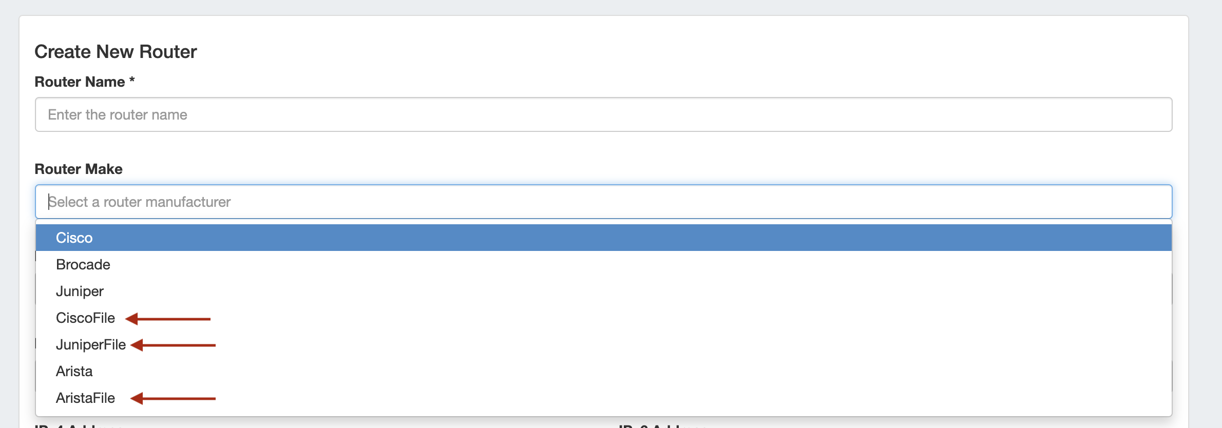 IM- 3450: Added File Connectors for Cisco, Juniper and Arista router types for use in Peering BGP Import