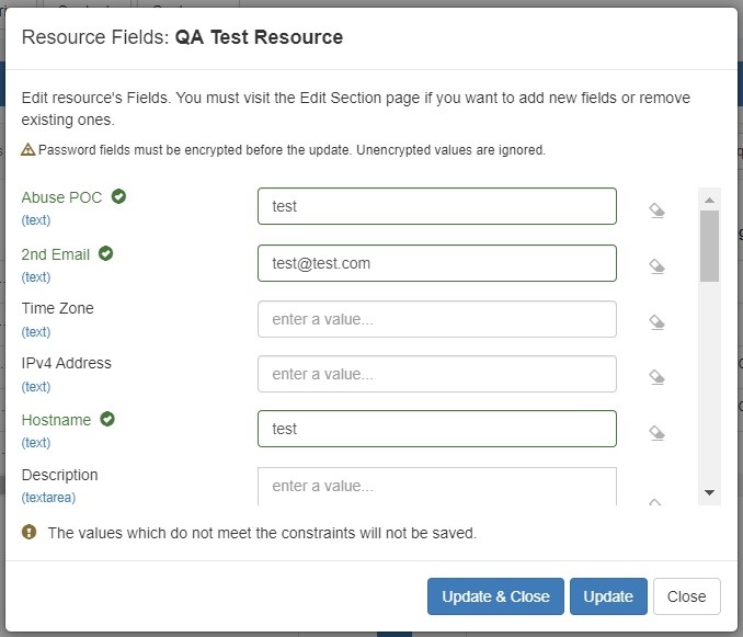 A constrained field is available to edit from the Resource List Edit Fields modal and the Resource's Fields Gadget.