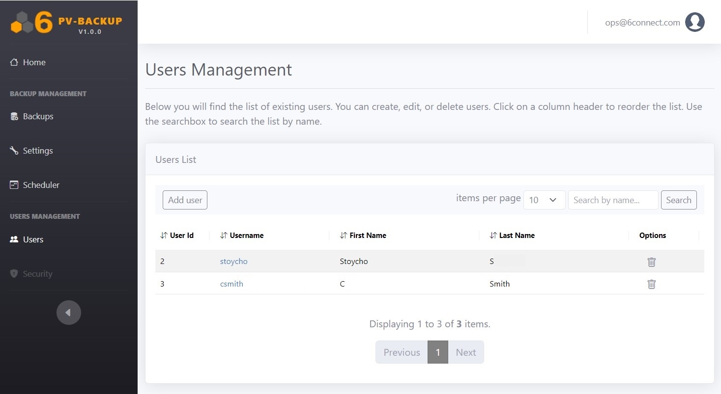 Add, delete, or edit users in this section.