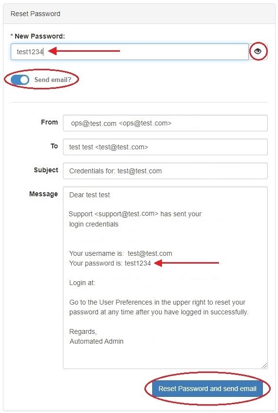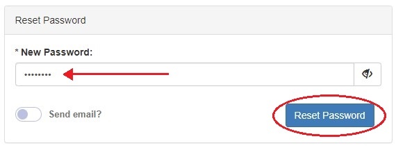 Enter a new password into the password field and it will prepopulate in the email template. When complete, hit "Reset Password and send email".