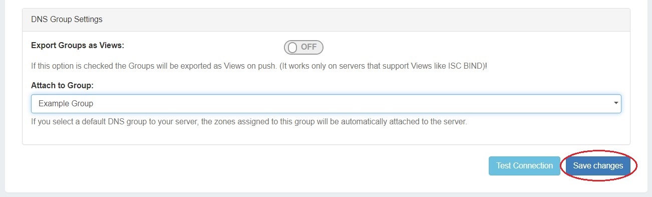 In the last section, select a default Group to be associated with the server. Zones assigned to the selected Group will automatically be attached to the server.