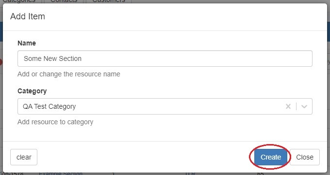 Create a new section by specifying a name and category. Then hit the "Create" button.
