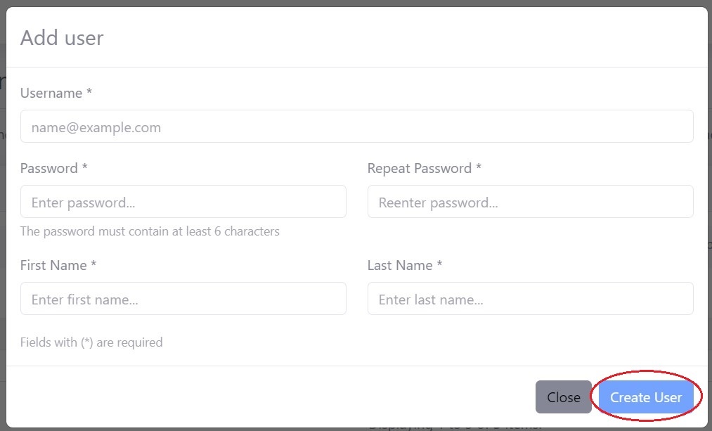 Enter user details and click "Create User".